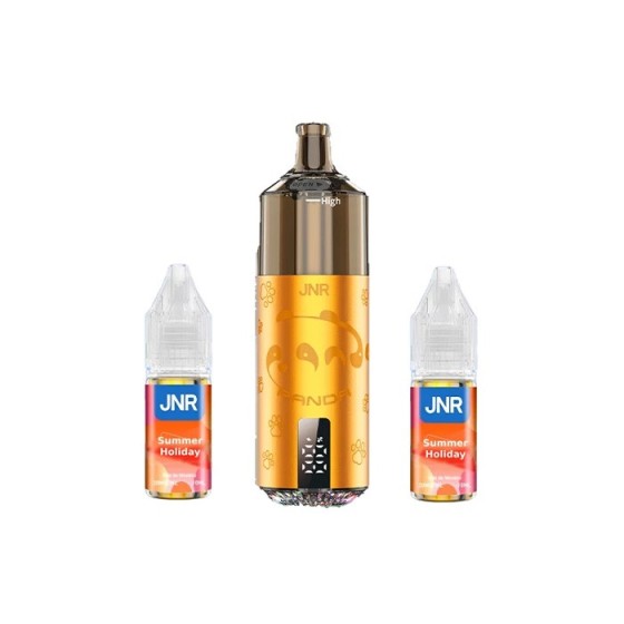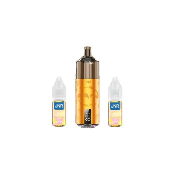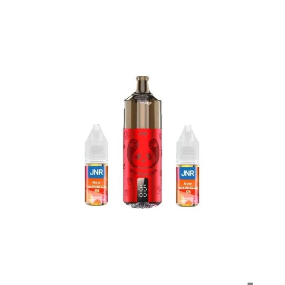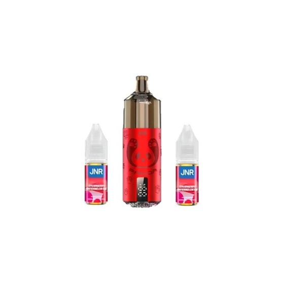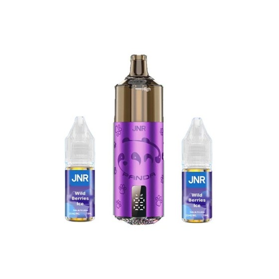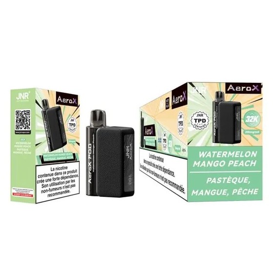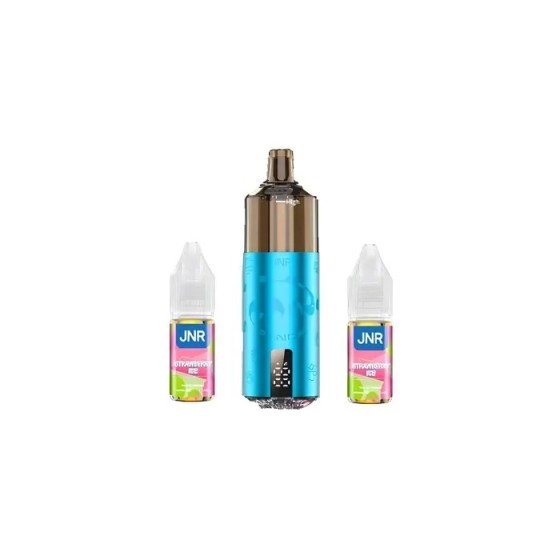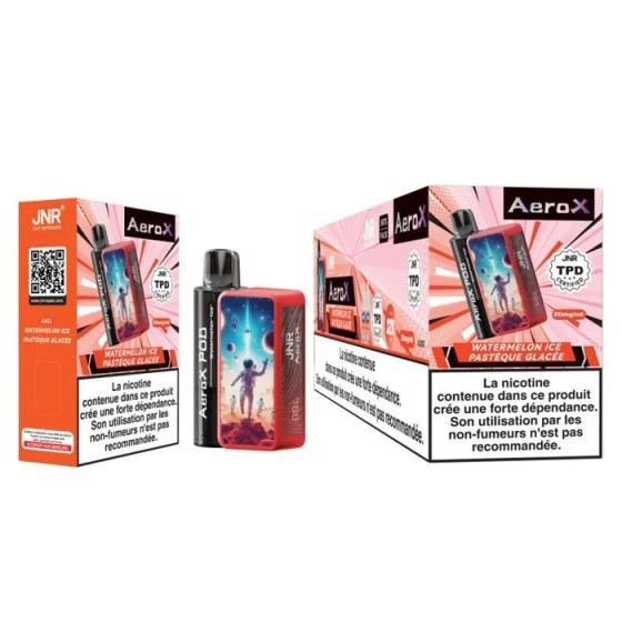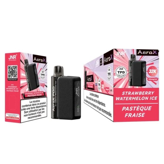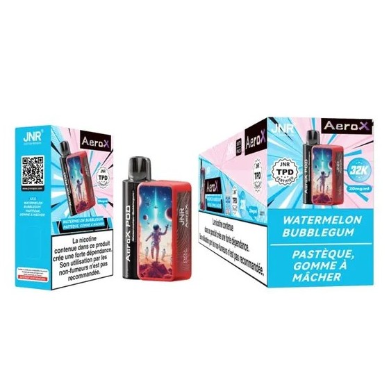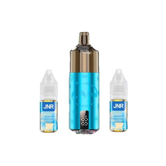 Le JNR AeroX 32K : Kit pod rechargeable longue durée (32 000 puffs) avec batterie 850 mAh et chargement USB-C. Livré avec 2 x 10 mL d'e-liquide 2% (20mg/mL) sels de nicotine. Saveur Myrtille Cerise. Une explosion fruitée et sucrée pour une clientèle gourmande.