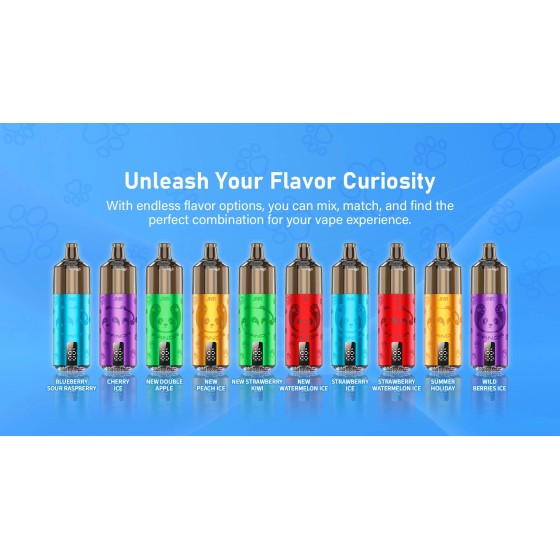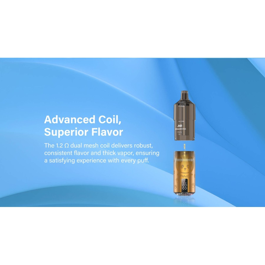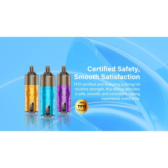 Mélange de fruits rouges sauvages et fraîcheur glacée sur le JNR Panda (850 mAh, écran, 2 ml + 10 ml). Jusqu’à 25 500 puffs, 2 % nic. (TPD).